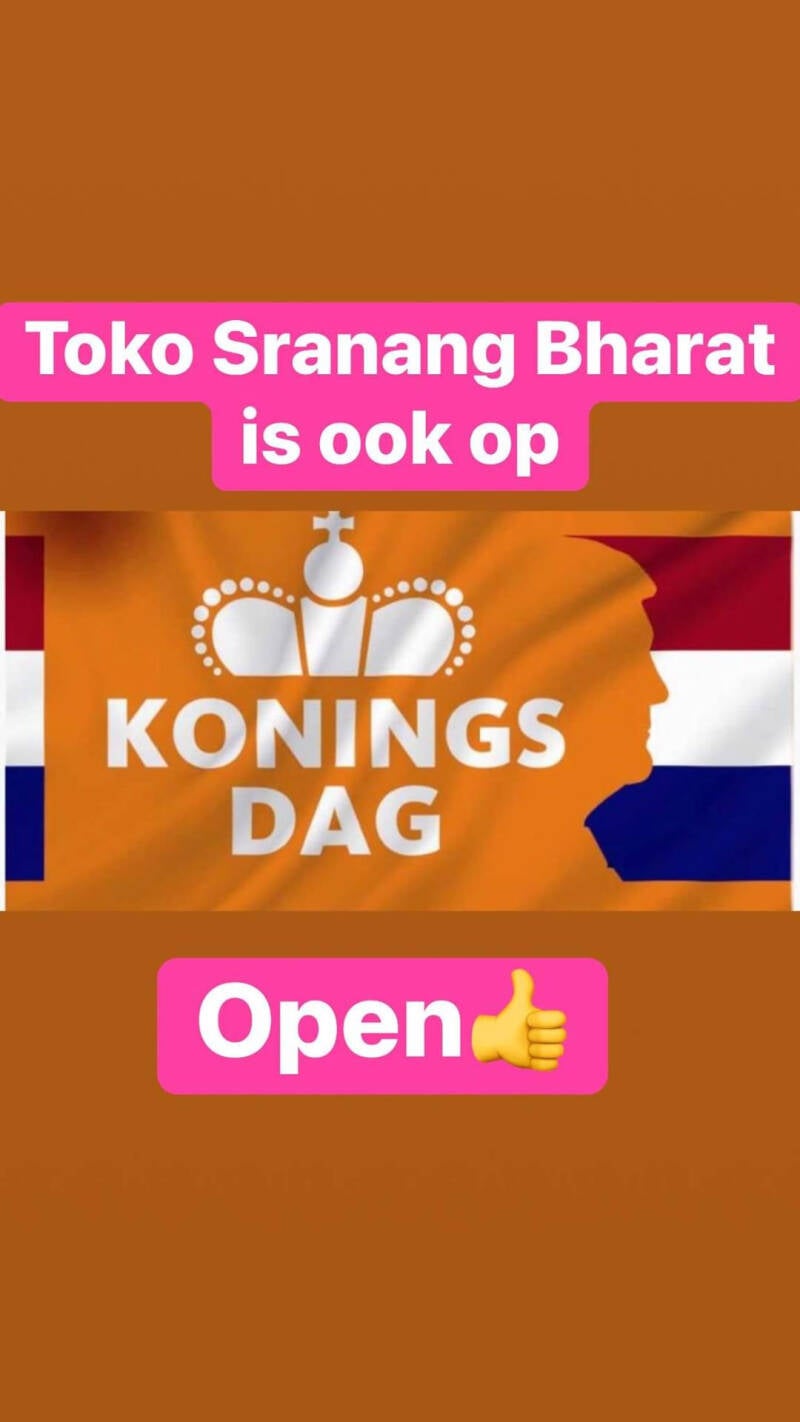 Beste klanten Toko Sranang Bharat is vandaag van 10:30 -19:00 uur open.